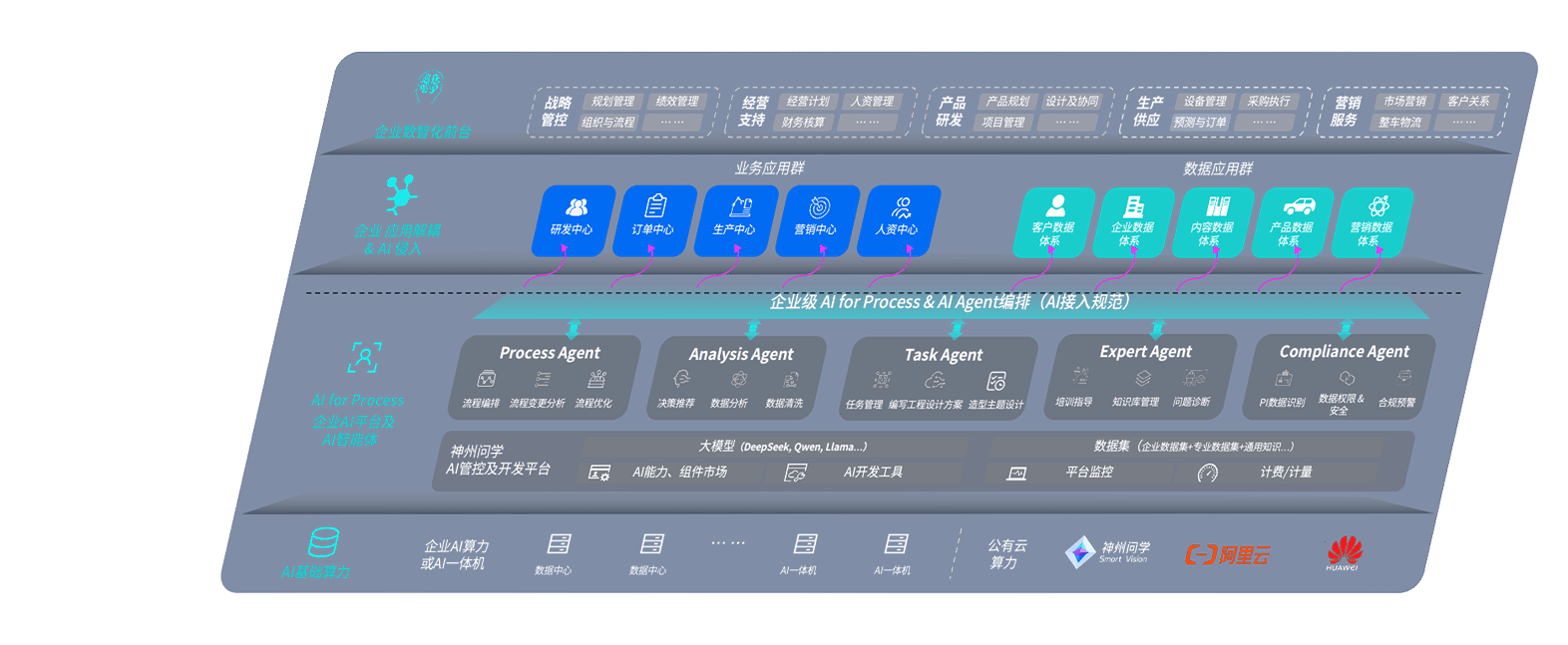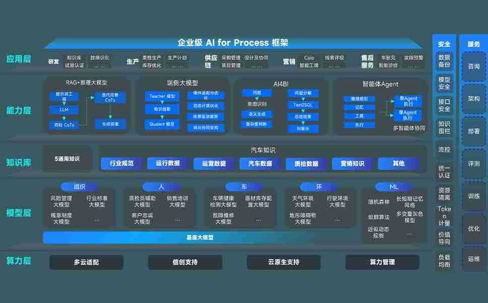 端到端的一站式AI工作空间深度融合了从企业战略规划到日常经营的全流程业务板块,,定向解决车企内部领域多、、、部门多、、、、链条长、、、、场景碎片化等难题,,支持车企快速构建以AI为核心的生产力写作体系,,,实现任务执行与AI能力的无缝集成与交互